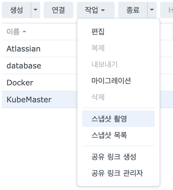 - VM인 만큼 Snapshot을 통한 OS 백업이 간편하여 Master 노드를 안정적으로 운영