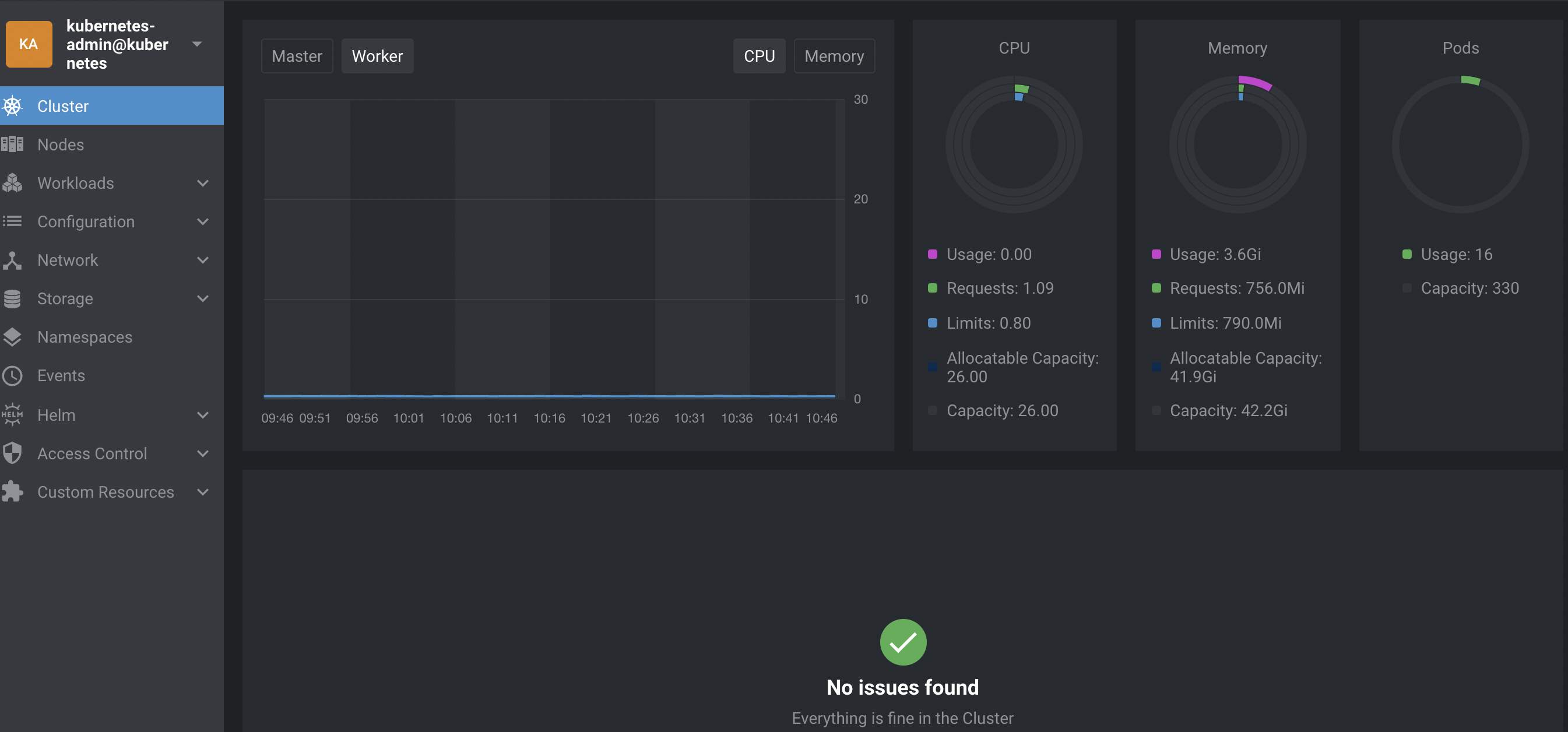 어차피 혼자만의 환경인만큼 앞으로 lens를 기반으로 cluster를 운영할 계획이다.
