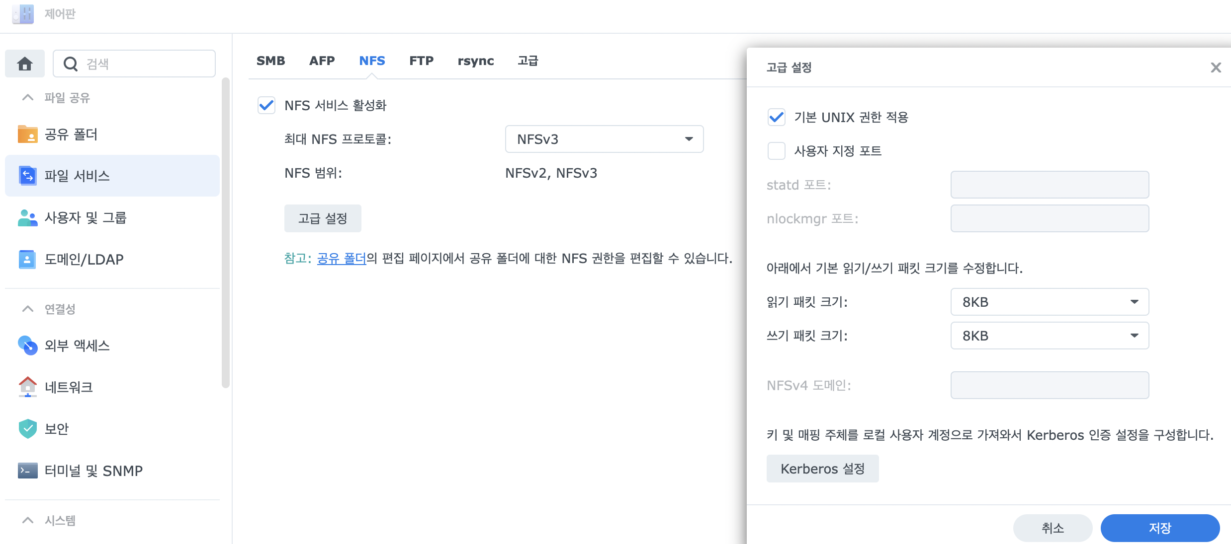 아직은 공유폴더와 사용자만 할당하였기 때문에 이제 본격적으로 nfs 설정을 해보자